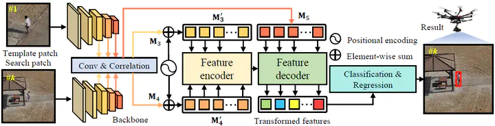 Siamese-based visual tracking methods generally execute the classification and regression of the target object based on the similarity maps. However, existing works either solely employ a single map generated by the last convolutional layer which degrades the localization accuracy, or separately use multiple maps for decision making, introducing intractable computations for aerial mobile platforms. In this work, we propose an efficient and effective hierarchical feature transformer (HiFT) in Siamese tracking. Hierarchical similarity maps generated by multi-level convolutional layers are fed into a feature transformer network. Not only the global contextual information can be raised, facilitating the target search, but also our end-to-end architecture with the transformer can learn the inter-dependencies among multi-level features, and discover a tracking-tailored feature space with strong discriminability due to the interactive fusion of spatial (early layers) and semantics cues (deep layers). Comprehensive evaluations on aerial benchmarks have proven the effectiveness of HiFT, and the real-world tests on the aerial platform have validated its practicability and robustness with a real-time speed.